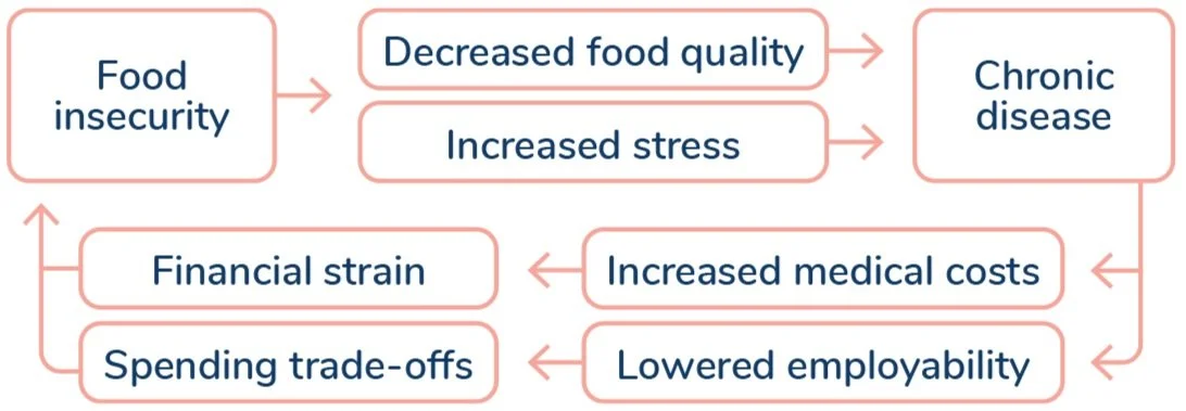 It forces families to choose between living essentials like doctor visits or utility payments and healthy food. Food insecurity perpetuates a cycle of overlapping issues that affect the development and the success of families.
